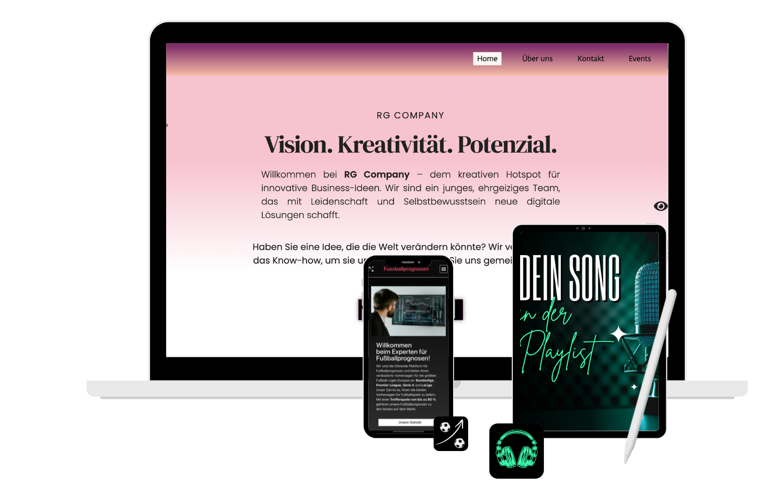 Mit einer Mischung aus Ehrgeiz, Kreativität und analytischer Präzision setzen wir Ideen in smarte, marktfähige WebView-Apps um. Unsere bisherigen Erfolge – die Fußballprognosen-App und diePlaylist – zeigen, dass wir genau wissen, was Nutzer bewegt und wie wir digitale Innovationen effizient auf Android und iOS bringen.